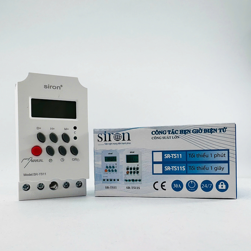 - Công tắc hẹn giờ tắt mở kỹ thuật số lắp tường tủ điện Siron SR-TS11