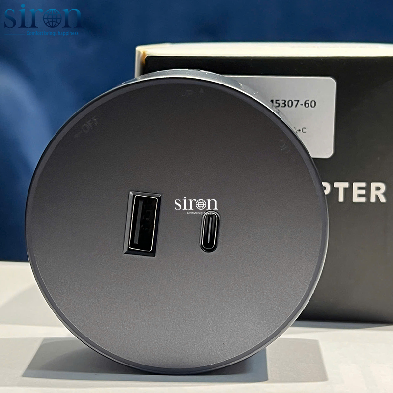 Ổ cắm Track socket USB Type A+C tròn màu ghi Siron TM5307-60