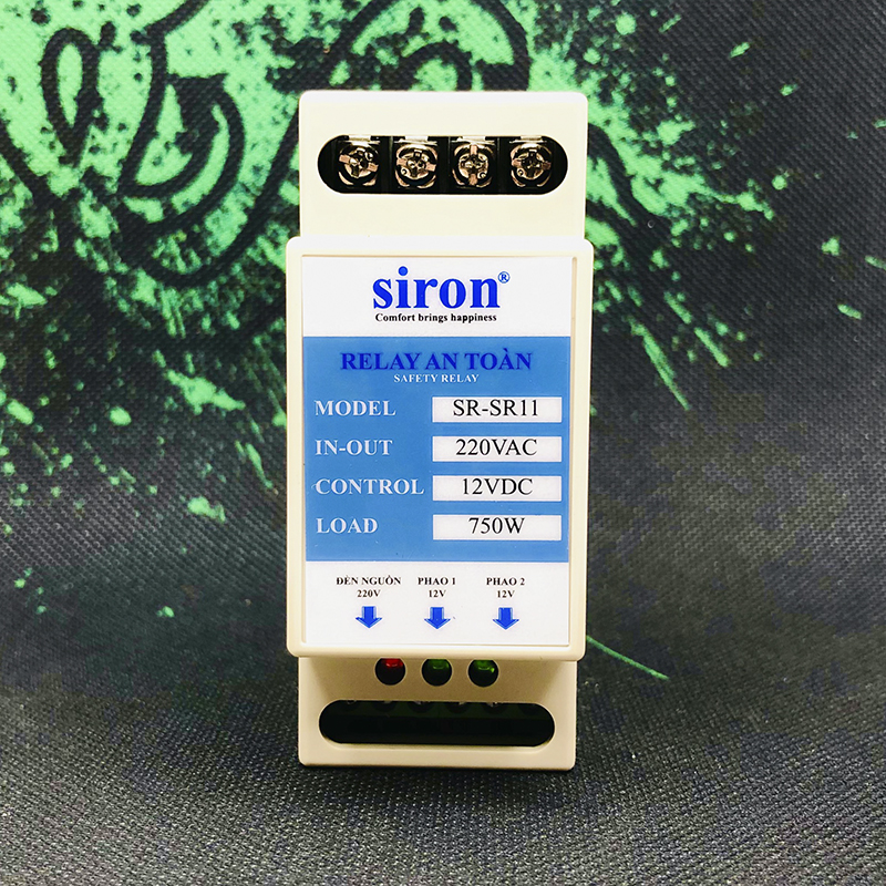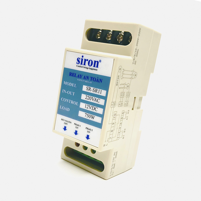 Relay an toàn 12V DC dạng thanh ray gắn tường, tủ điên Siron SR-SR11