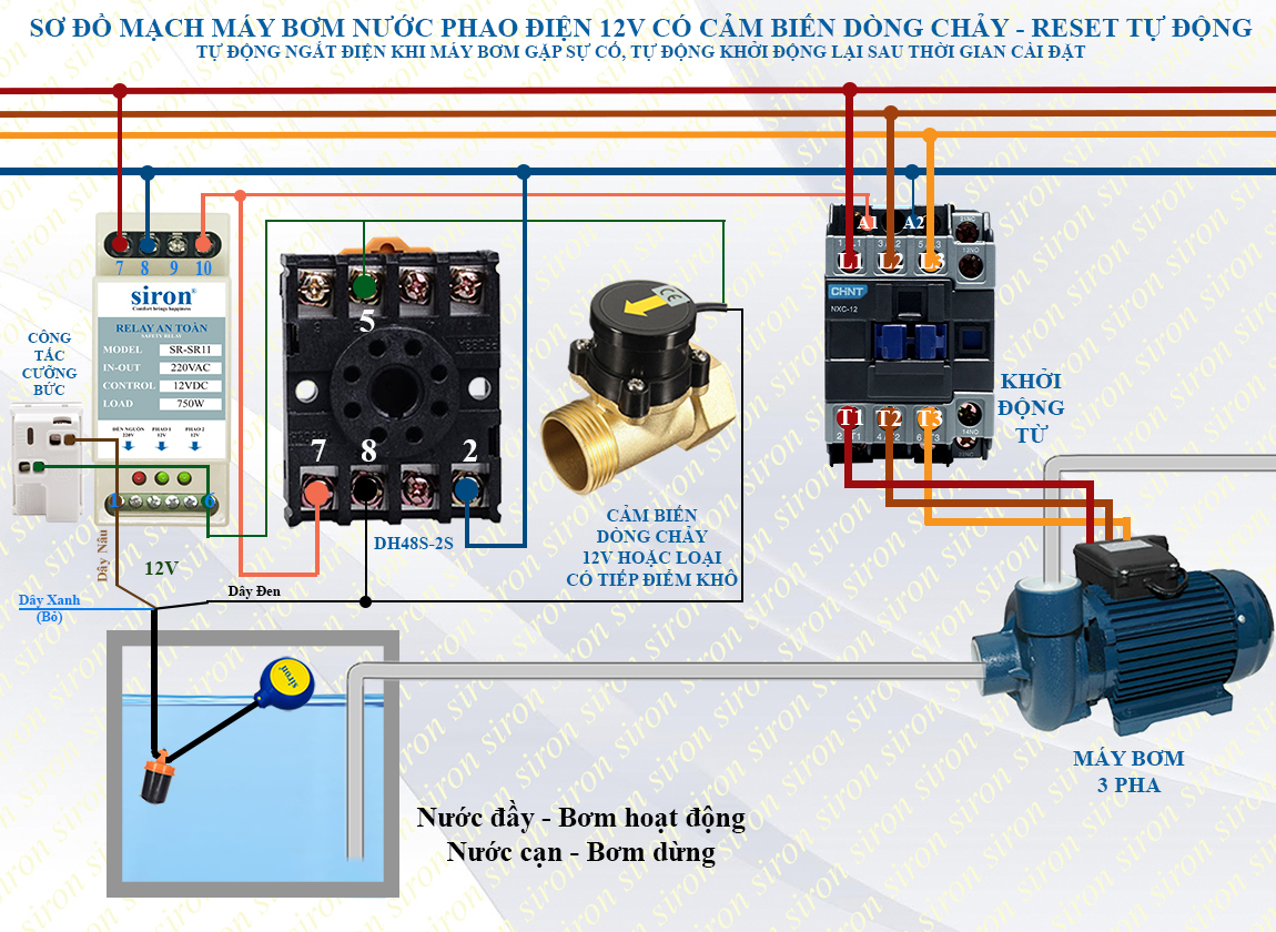 Cách lắp chống mất pha cho phao điện 12v điều khiển máy bơm nước 3 pha